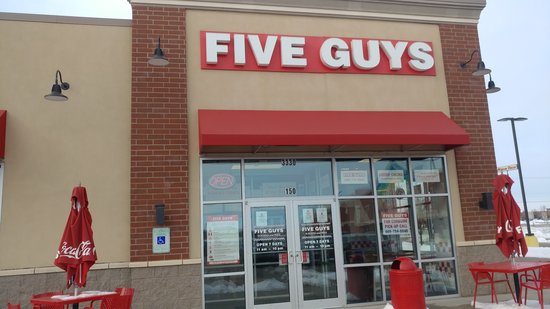 Read moreFive guys is an impeccably clean restaurant with good food. They've managed to make burgers taste good without the luxury of a flame grill. The fries are actually pretty good considering they're fresh cut, I prefer the frozen pre prepped variety one might find at most burger chains. My biggest complaint by far is the price. I gotta say price plays huge on my decision to go 2 stars with this review. Fast-food burgers should not cost this much money. The shame of willfully paying the price five guys requires for their delicious burgers could be akin to blowing a narcodics dealer for a fix, ala "Menace to Society ". Which is weird considering he offered up a cheese burger before he offered...