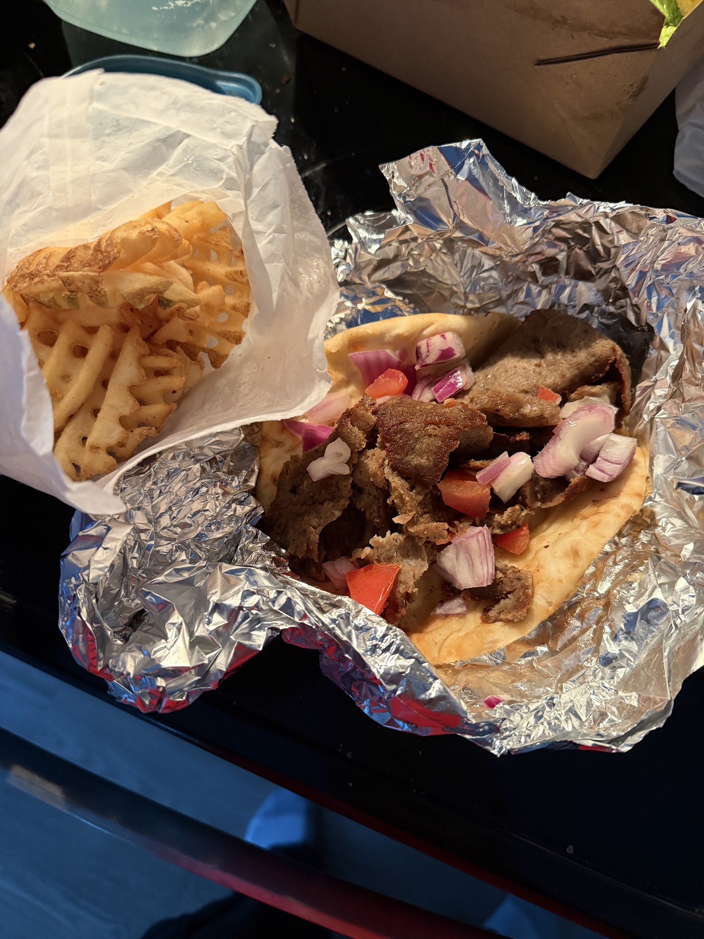 Read moreMy experience there was overall very positive. I used a coupon that they had and ordered a gyro to go which came with waffle fries. Being pretty hungry. I tried the waffle fries. As soon as I got back to my motorcycle. They were not hot and we're just a bit greasy (for my taste) but crunchy overall and flavorful. The gyro I waited to eat at home which was about a mile away. I must say it was excellent. Big juicy chunks of ripe tomato, red onion and lots of meat. Didn't get a real chance to taste the tzatziki sauce as it was all over the aluminum and not really on the sandwich. Probably not the best thing to order to go. I was there at lunch time and even though they were very busy the service was excellent, friendly, and very helpful. I highly...