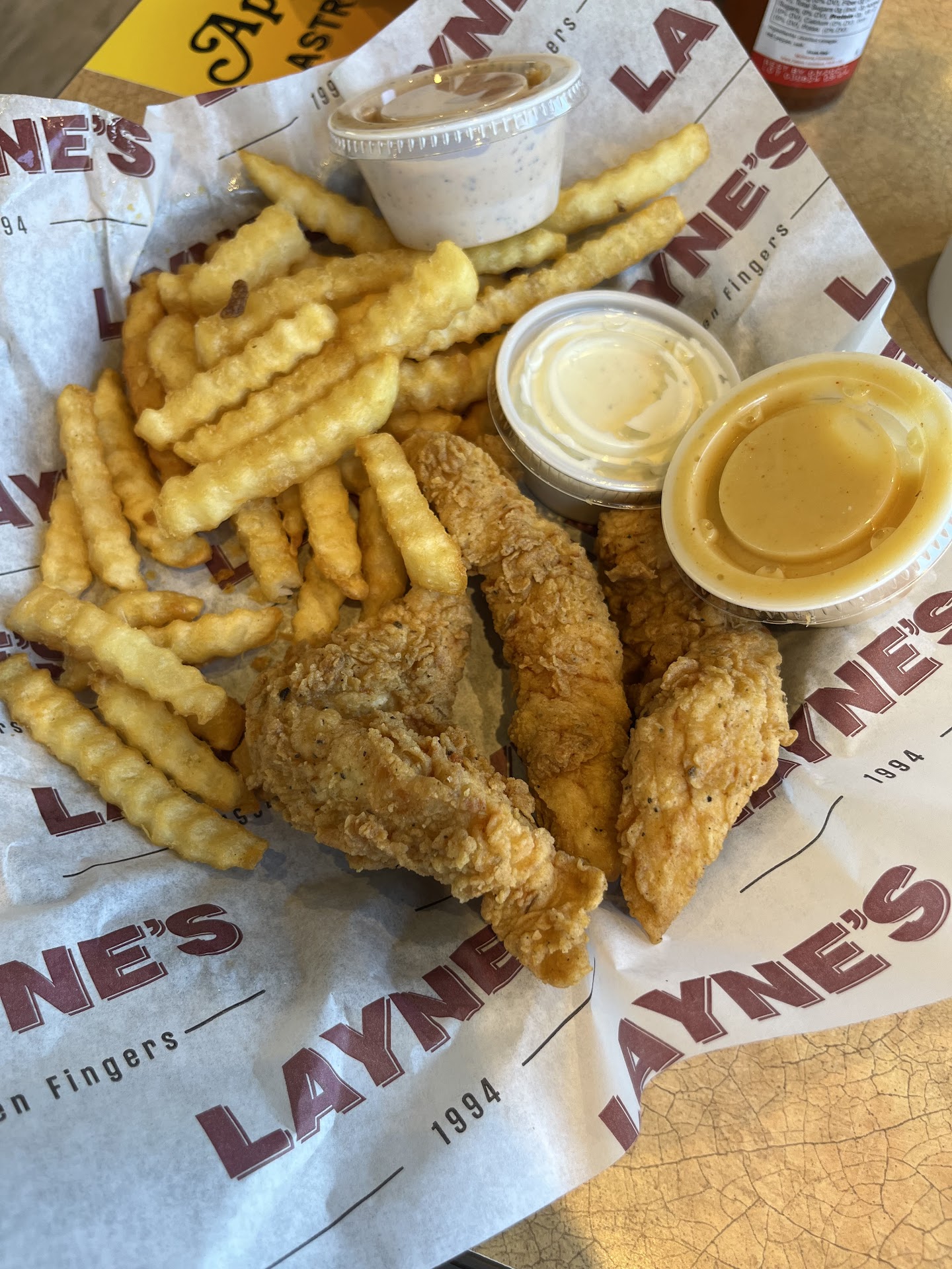 UPDATE Luke! You asked me for this, so here I am, and also will have pictures attached! To everyone who has NOT tried it! (The flippin chicken fingers!) then youâre missing out! Not only was the chicken fresh as ever! The fries were spot on, everything had a crunch as it should be with the chicken and fries! But the bread , GAME CHANGER!! Gosh how did you guys make it this far? BY HAVING AMAZING FOOD EVERYONE WOULD BE HAPPY TO HAVE! (Of course you canât please everyone) signature sauce out of this world! Homemade honey mustard and ranch you say? Most def! This place runs pretty smooth!