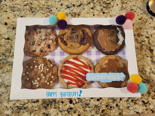Oh how we simply LOVE these cookies. I kind of don't know what to say. We have tried almost every flavor. (We being myself, my husband, and my two elementary aged children that have such selective palates they won't even eat a hamburger and are picky about their cheese pizza.) There isn't a cookie they won't try! Our favorites are the peanut butter ones, ube oreo, and cinnamon roll! Even the cookies that I don't think I will like are amazing! Seriously! I can pass on carrot cake or pecan pie- but combine that with the magic of Sugardust and they are favorites! The crumbles, the drizzles, the frosting, OH MY! These are hands down the BEST cookies you will ever have! Service is always personalized - these ladies are seriously the best! Go get them all- but please leave...