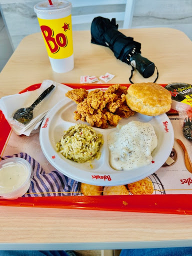 We went through the drive thru to order, the lady taking the order was nice. When we were handed our order, I said thank you have a good night, the woman just stuck her nose up and the air and closed the window. When I got home, I realized that they gave us biscuit gravy (white gravy) to go with mashed potatoes and we were missing a side that we paid extra for. So I had to go back up there. I told them the mishap with the gravy, where the same woman informed me that on the website it states that they dont do brown gravy there, only white. Ma'am, I went through the drive thru not the website!! NO NEED to be sarcastic! I also told them that I was missing items. They replaced it. I've been to many Bo Jangles, I've never been to one that picks and chooses which items they will put on their menus. Their food was dry and cold just like their customer service! Will NEVER return to this location. Walmart has better...