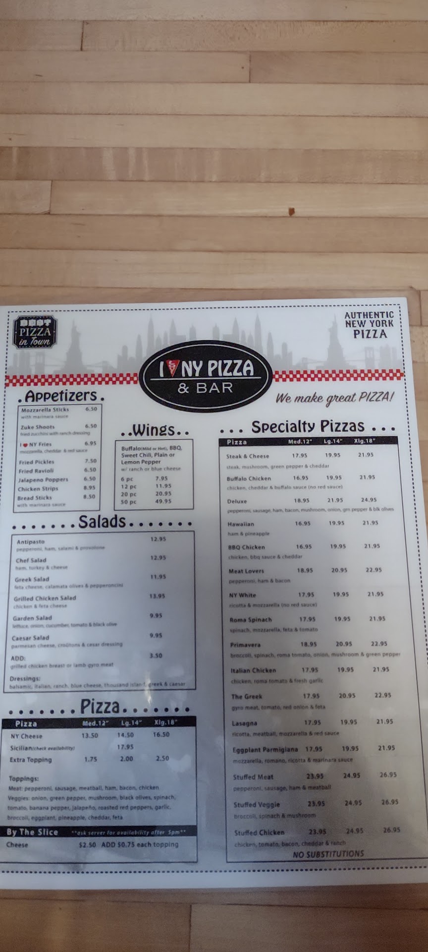 Read moreWent to I ❤️ NY pizza in Jasper today for our weekly trip. Ordered the pizza we wanted. When it came out the waiter leaned over and her hair was in the pizza as she bent over to put it on the table. Well, I pointed it out to her and she said “do you want it?”, to which I replied, “not after your hair has been in it. So she took it back to the kitchen and the (I guess it was the lady manager) came out and ask if we still wanted the pizza we ordered and said that she would remake it. I expressed concern that they would bring the same pizza back out. She said I promise you it won’t be the same pizza. About 10 minutes later she brought a pizza out, and I know she had not had time to remake a pizza and run it through the oven. She put it on the table and said “be careful, it’s hot”. That pizza was barely warm. It was, what I think was, the same pizza. By this time I was just shocked that she would have the nerve to bring the same pizza to our table after it had been touched by the waiters long hair. Why no hair restraints? If you can’t be trusted to remake a pizza, then proceed to lie about it and pretend you remade it, how can we trust you with our future orders? Guess what? We will find another pizza place closer to home. We drive from Fairmount to eat pizza there at least once a week, but we won’t anymore. Learn to be trustworthy. It pays in the...