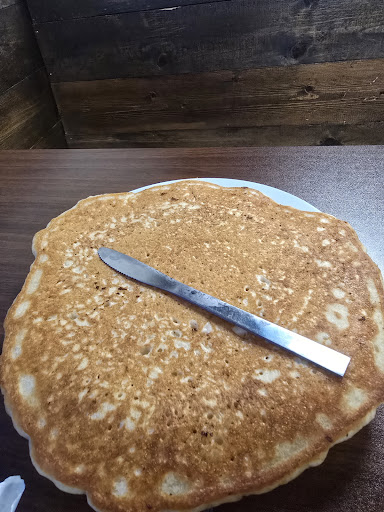 We had a simple breakfast of Eggs hash brown and ham. And one pancake. Between my wife and I we could finish it. The pancakes are huge. The ham steak is delicious!