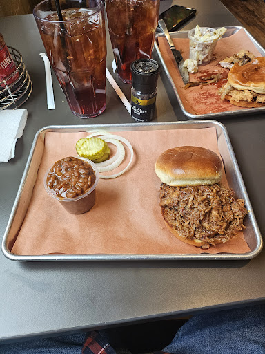 Read moreYou walk into the restaurant, and you go to the counter to order. I ordered a pork butt sandwich with baked beans, and my wife ordered a tenderloin with potato salad. We both ordered drinks, went to the table, and waited. The food came fairly quickly. The young man at the counter was very helpful, and answered questions, seemed to be a nice fella. My pork butt sandwich, or pulled pork, was already tossed in barbecue sauce, but they do have barbecue sauce on the table, so I added a little bit to it. Unfortunately, the bun did not hold up. It got soggy, and I had to finish eating the sandwich with a fork, which is okay because it was very good. It had onion and pickle, and the baked beans were just extraordinarily good. I've been in barbecue places, and the baked beans were nothing more than beans out of a can. These are very good, I enjoyed them. My wife's tenderloin was extraordinary. It was sliced on the premises, tenderized, breaded, and deep fried. It came with fried onions, bacon, with some type of sauce. She said it was the best tenderloin she's ever eaten. The place was clean. It has been there a little while, but still was clean with a good atmosphere. Yeah, go check it out. If this review has been helpful, give me a heart...