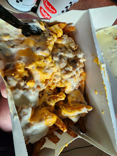 Read moreWent there on Friday night after arriving in town to a hotel late. Thought I'd get some burgers because Rally's chain usually has good food. My order consisted of a chilli cheese dog combo, their bacon double combo no mayo, 6 regular Rally burgers, an extra large fry and a cup of cheese. We had to pull into a parking space do to our "large" order. There was one car ahead that pulled into a space too. In the meantime at least 8 if not more cars were in and out of the drive up. Pretty sure that many orders at around midnight or later were not just getting drinks. Finally a heavy set male worker with dark curly hair with all the ambition of a snail on Adderall walked out with a bunch of bags. We were in a space closest to the drive up and got our order ahead of the person ahead of us who had been waiting longer. No apology or anything after waiting around 20-30 minutes for our order. Get back to the hotel and the burger that was supposed to be mayo free had mayo. Organization at this Rally's needs serious work or perhaps some...