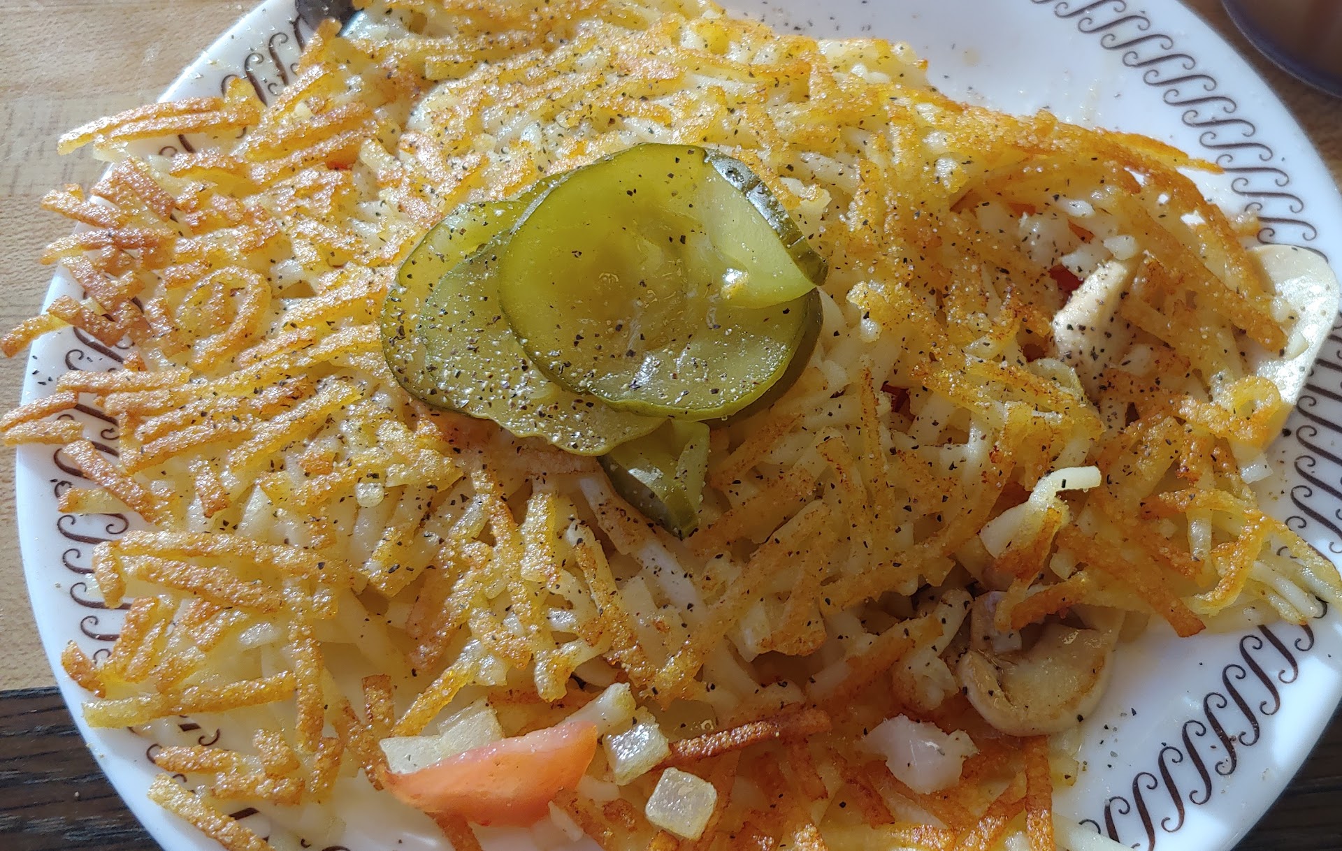 Waitress asked us what we would like to drink and took our order and then took it to the person that calls the order out. We always listen so we can say something and we can catch their attention. He called out "pull 3 bacon---1 well". I said that all 3 were supposed to be well. Our waitress came over and asked if I said something so I told her that I said "all 3 were supposed to be well". She said oh yeah...she goes to the call out person and tells him that they were supposed to be well---he shows her the ticket and says "I called out what you wrote on the ticket" she did change it but it should have been on there to begin with. She comes to our table and tells us she took care of it...in the meantime we still have not gotten our drinks. She walks by several times and then stops and says "did I not already bring your drinks?" No---do you see any glasses on the table---is what I wanted to say but I just looked at her and said no. She gets our drinks and brings us our food...my hashbrowns were supposed to be well done (it was called out "well")---the top was barely cooked and the bottom was not brown at all. I would have sent them back but the rest of my food would have been cold. They were busy but they are always busy. We did tip but she would have gotten a lot better tip if she had done...