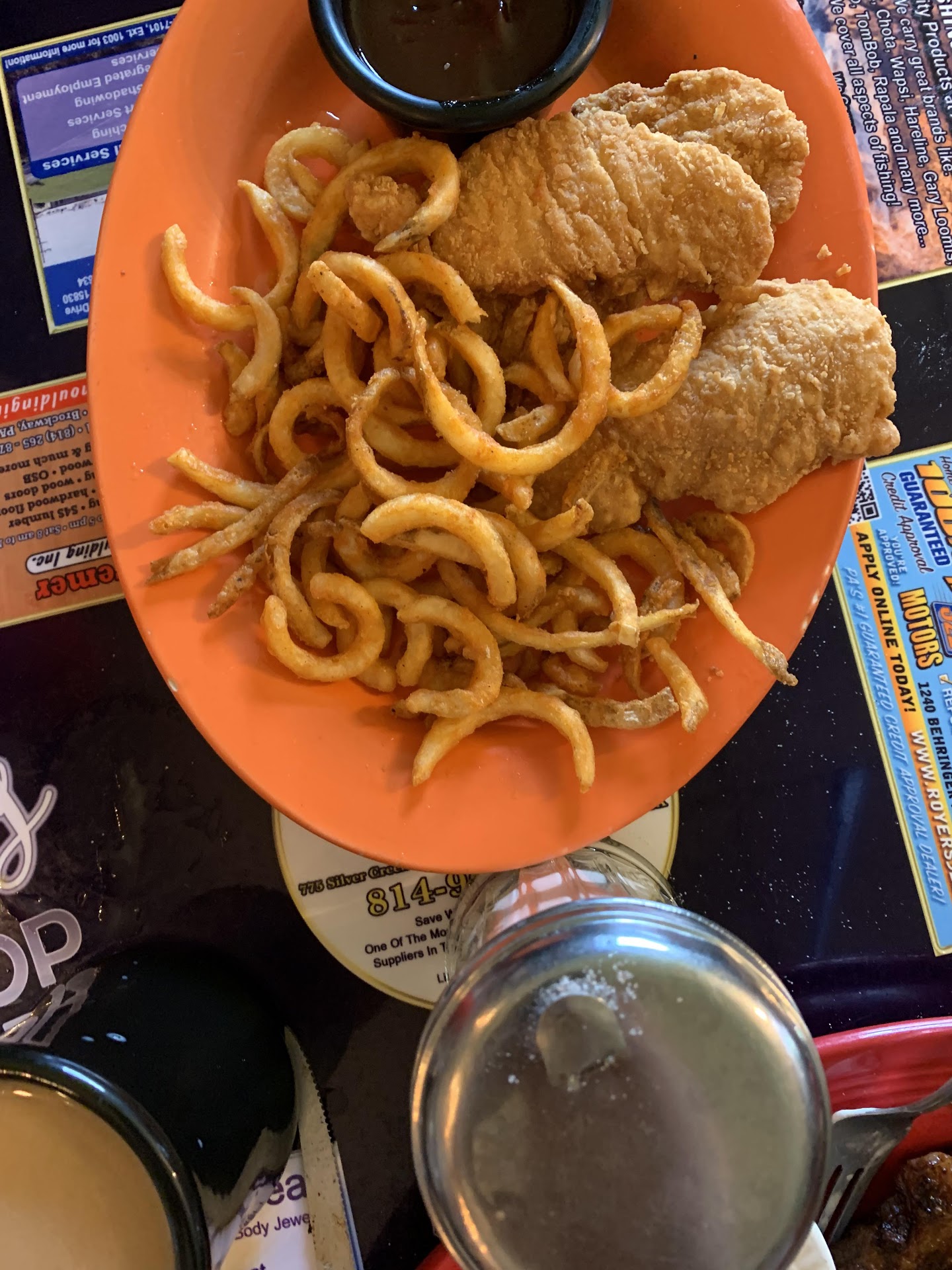 This is the first time I went there and it was better than I expected. I do have to point out for the amount of customers they get, they could at least fix their booth seats as they had huge holes, rips, etc. The infant high chairs did not have proper buckles on them at all. When we went, it was quite, with very few customers, except for my baby who was not quite at all. Next, let's get to the food! So, the fries were actually the best fries around. Even better than your local fast food restaurants. The chicken tenders were perfect. The "spicy" curly fries were a bit of a let down because they didn't have a "spicy" kick to them. The Dexter burger was juicy and messy, falling apart once you bite into it. The ribeye had to be cooked a little longer because it was still rare, when I asked for not well done, but not too rare. The waitresses was kind enough to wait until I cut into it and take it back for a longer cooking session. The hamburger steak was good. The only issues I had was that there was not enough gravy on it and it was salty in some areas of the meat. The orange juice tasted nasty. I don't know where they got it from, but I DO NOT RECOMMEND! Other then the above faults and flaws, I think I might...