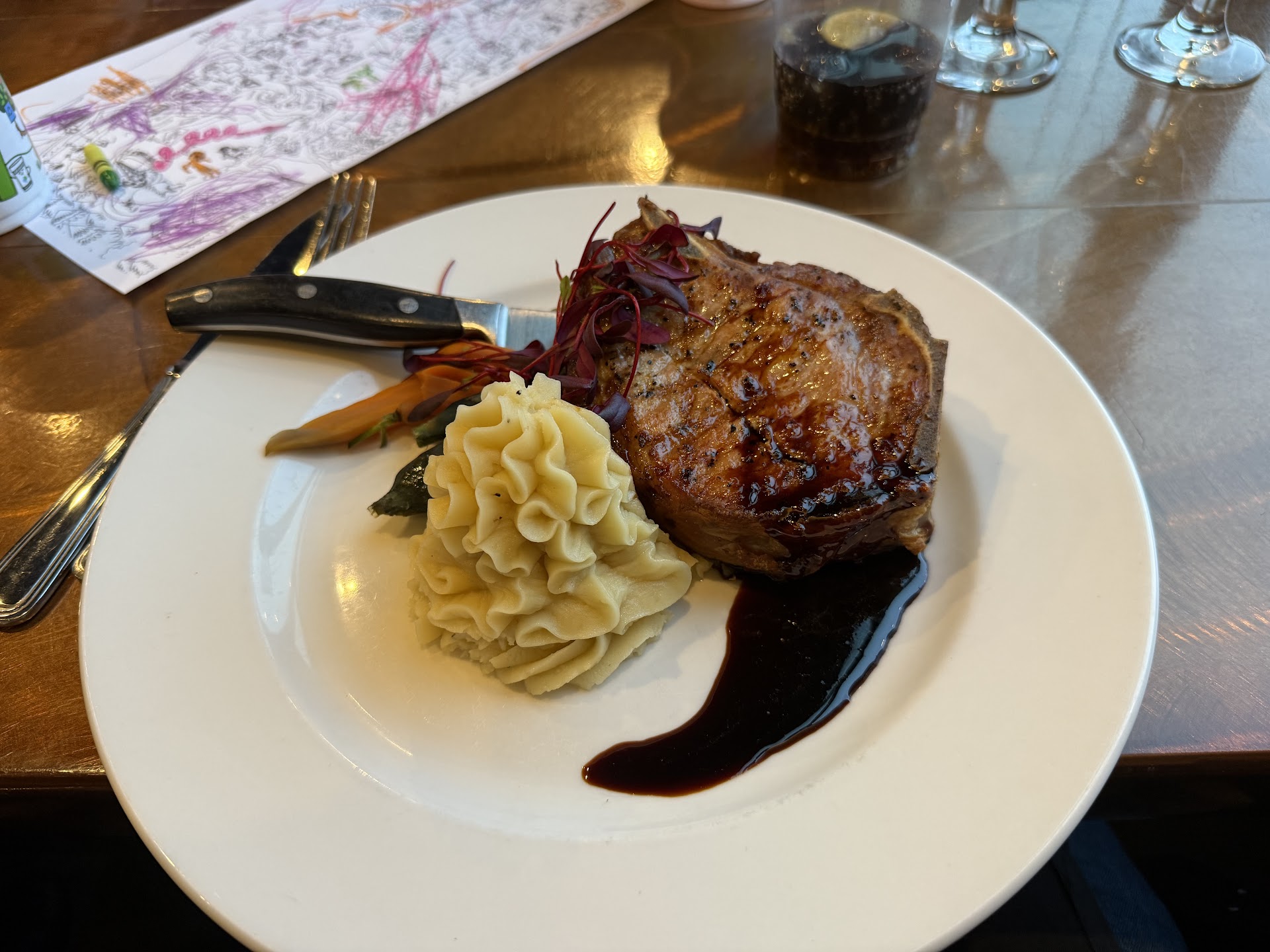 Solid mountain dining experience! Staff was friendly and accommodating, let us substitute sides on mains without issue. Good kids meal options. Decent variety of mains, and good desserts. Food came out pretty quickly too.