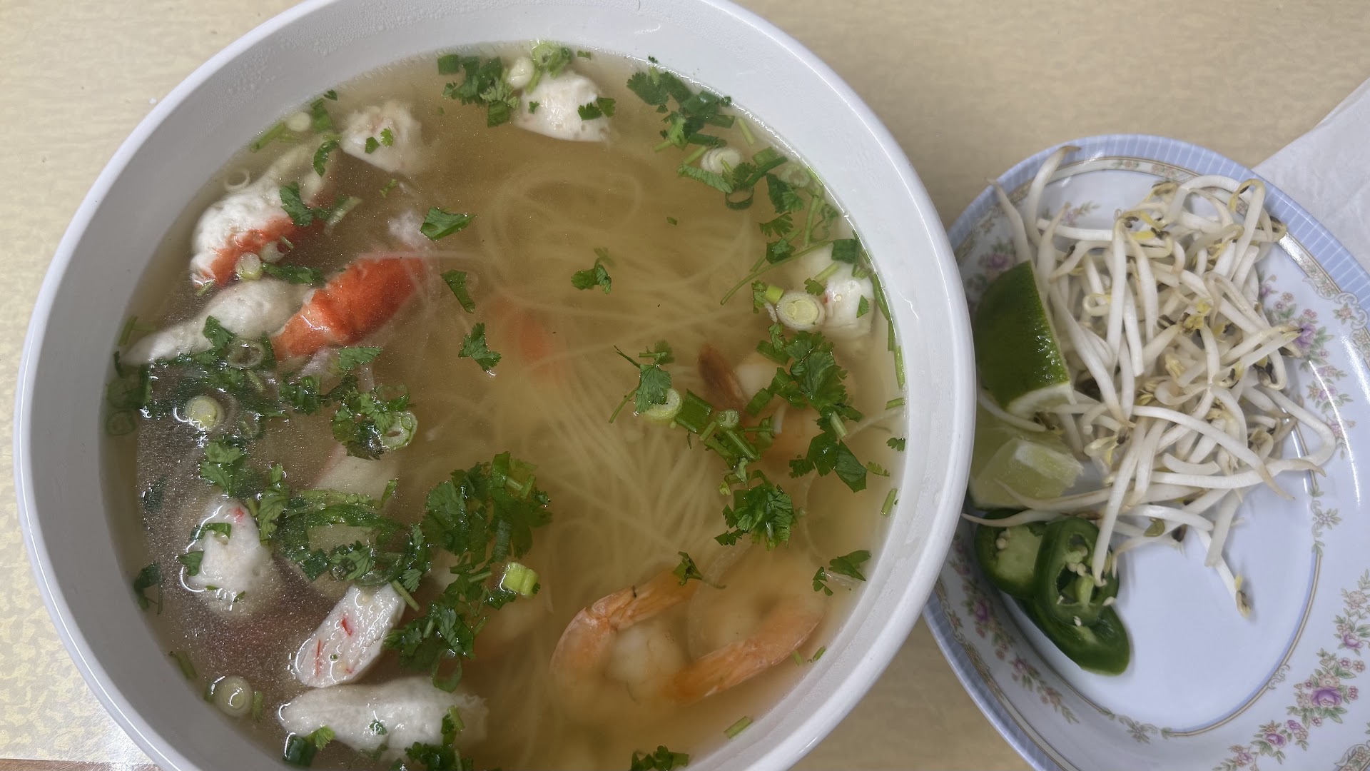 The Pho #1 Combination was very good and not too salty. You can always add salt if you want, but can't remove it if it's too much. The broth was hearty and flavorful and had a depth of flavor. I like a lot of floating fatty flavor and will ask for more next time.