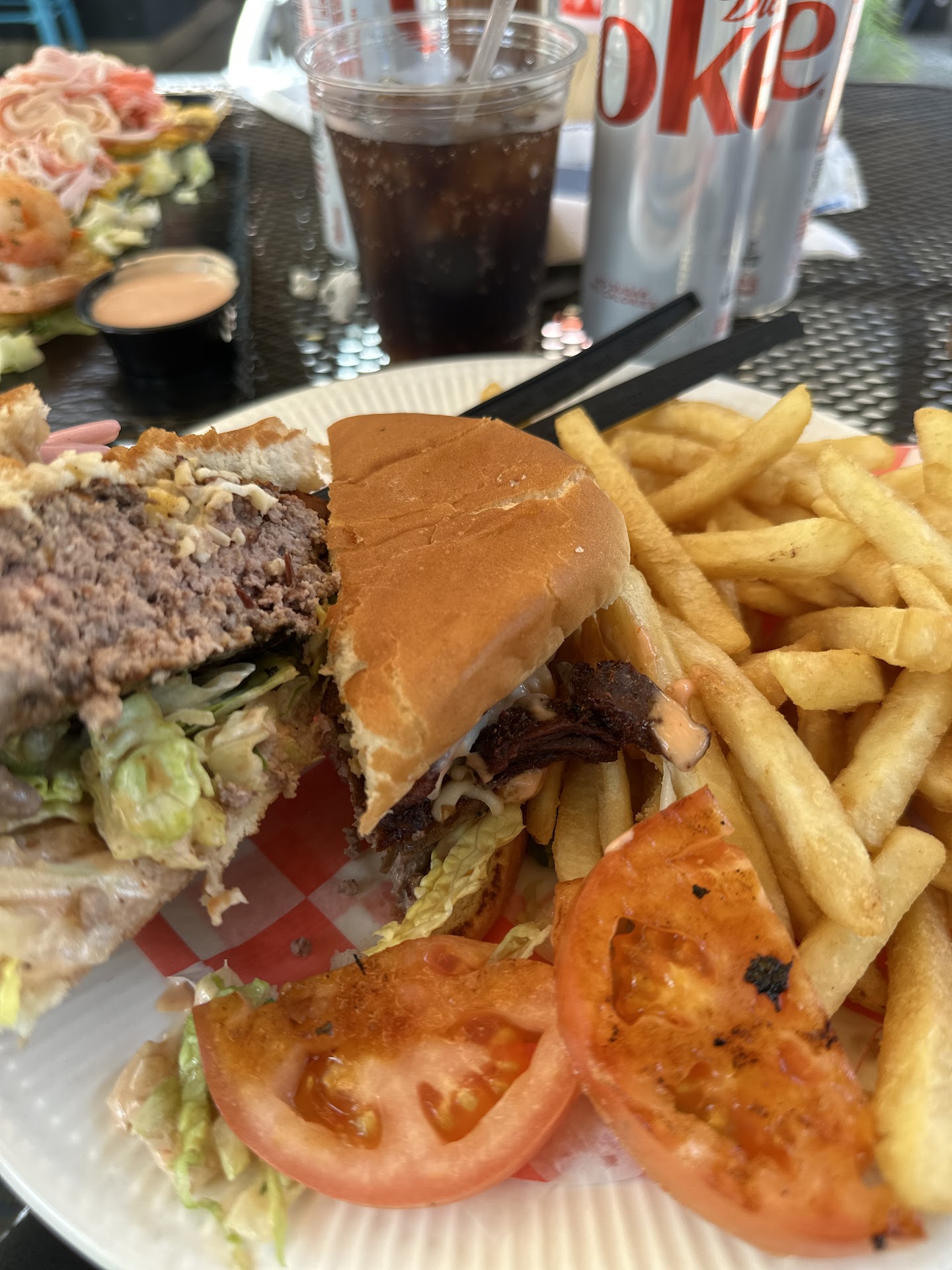 Pedimos un queso frito de entrada que tardó 25 minutos en llegar y 3 Coke Zero y nos trajeron 3 Diet Coke 🤣🤣🤣 pero lo perdonamos porque teníamos sed y ya nos habíamos comido el queso 🙌🏻.