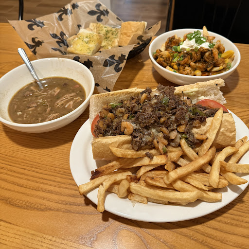 However, the food was not very good. We ordered the shrimp cocktail as an appetizer, which was served with chilled mini shrimp. For entrees, we ordered a grilled cheese/fries for our son and we both got the "stuffed crab" po'boy after our waitress highly recommended it. The bread was thick and chewy, you had to tear it with each bit, and the "crab" was.. well, brown-grey mush with not a great flavor at all. On our receipt, it was labeled "crab cake". Neither of which I believe are fitting for whatever it was. We also ordered a cup of the gumbo. Again, not a good flavor nor do I believe a good representation of cajun - it was kinda bland and bleh. The fries were great, crispy and warm. Maybe it was an off day, and I dislike leaving less than stellar reviews, but overall our experience was...