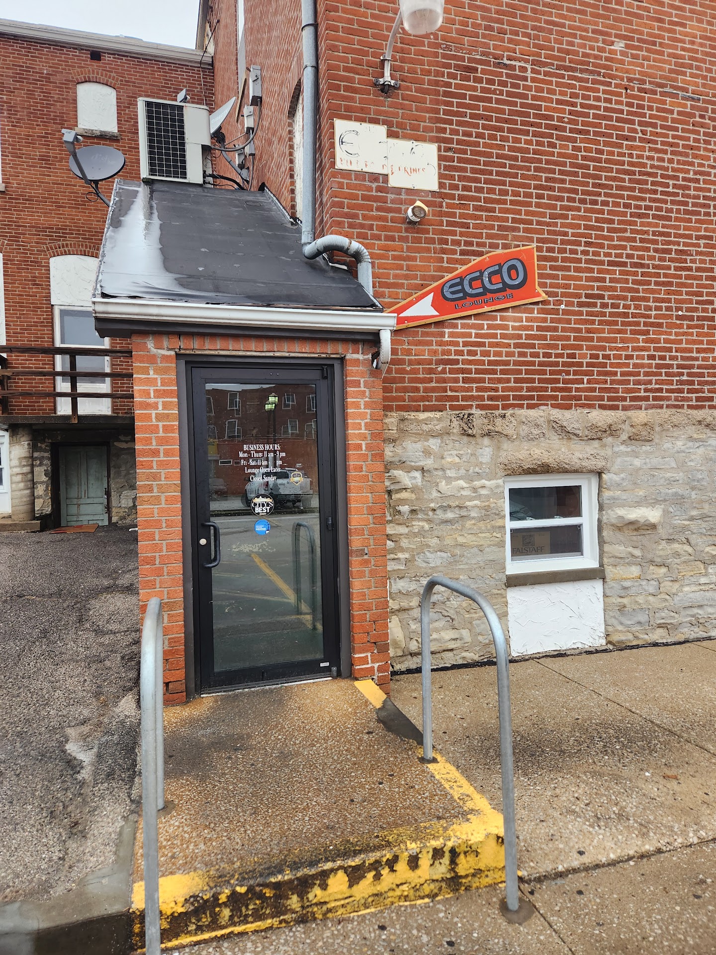 I actually went to the Ecco Lounge the night before I continued my move east this Spring with my folks. It's a restaurant they like going to occasionally and there's a couple dishes they like to have when visiting. The Ecco Lounge is one of those places that has a colorful local history. So much so, they are proud to share it on their menu as you decide what to order. The main bar area itself is what you'd expect, though they have preserved as much of the place's history as possible in the floors and furniture. If you dine in that area you will certainly enjoy it. However, I would like to see a little more thought and personality go into the dining rooms behind the main bar area as it is kind of close quarters and not as "colorful" as the bar. At the very least tie it into the rest of the place a little more seamlessly. Many locals know of and rave about the prime rib sandwich ($15) and when I ordered it, it didn't disappoint. For the price, you get a nice piece of prime rib served on a toasted hoagie with horseradish sauce and au jus on the side. This was a very mouthwatering sandwich and I enjoyed every bite. The au jus was also very tasty and complimented the sadwich. The only critique that it was a hair underdone; while this didn't bother me, some folks might not like that. However, I will add the disclaimer that it may have been more the service that evening than the sandwich itself. The fries served alongside the sandwich were done just right and we're crispy. My folks also ordered the fried mushrooms to start our meal. Overall, they were good and the dip paired well with it. However, especially per my folks' critique they were a little soggy and not quite as good as they usually are. The service was decent, but wasn't the best. I am probably giving a little more generous rating than my folks would have, but the service was a little slow and could use some improvement. I believe the service we had also affected the food we had, but not too heavily. Part of that may have also been to us dining midweek, so keep this in mind when visiting. I would like to see the service and atmosphere improved to really help sell their food. But, Ecco Lounge is a unique bar and lounge with some really tasty dishes. Definitely worth trying out at least once, especially for the prime...