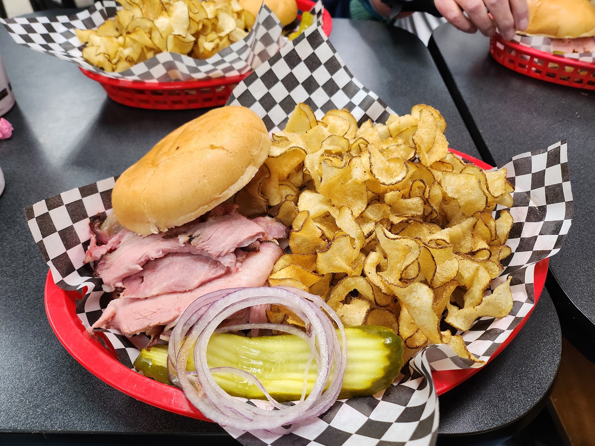 So, who would you consider the best BBQ in Missouri? If you're leaning towards StL or KC...let me review a place in JCMO that will give them a run for their money. Lutz's very likely has the best BBQ in JCMO and has sauces that can compete with the big boys at the American Royal. Lutz's resides inside a gas station (used to be a Blimpe long, long ago)...due to a bit of local history regarding food trucks in JC. Yes, they started as a food truck but due to local ordinances, they moved into a gas station. Due to formerly being a fast food sub joint, their dining is a little small. However the dining area has a great atmosphere for a BBQ restaurant. The decor is well appointed and compliments the cuisine. The service is also very good; while they are a counter-serve restaurant their staff is overall very attentive and friendly. Now let's get to what puts Lutz's on the map; their outstanding BBQ. For this review, I had one of the daily specials being a sliced pork sandwich with house seasoned chips. The pork was flavorful and moist and was generously proportioned on this sandwich and had the right amount of seasoning and cookies just right. The chips...let's say there's a good reason when my folks order a carryout order, especially when serving dinner for my sister and her family, they always have to get two bags. These are homemade sprial-cut chips made right in store. These are sliced nice and thin for that irresistible crunch and are fried just right. They also have a wide variety of spices and seasonings they and apply to your chips. For my basket, I had their house seasoning which I think works well with their chips. On the table, they have a couple different sauces you can sauce your BBQ with (or dunk those chips or fries in). One is (if I recall correctly) their KC style sauce, one is closer to a Carolina vinegar-based sauce and one is spicy. Speaking of, if you love that sauce you used so much, they also sell their BBQ sauces in-store (HyVee carries them, too...but I recommend getting it straight from the source as they tend to sell out at HyVee). Outside of what I had, I also enjoy their chicken and their ribs and they have a good brisket, too. You can also order ahead either by phone or online, useful for a big family meal or setting up some catering for your event. Definitely don't let the gas station location discourage you; you'll be missing out if you do. For BBQ in Jeff City, definitely stop at Lutz's...though don't blame me if you're returning for...