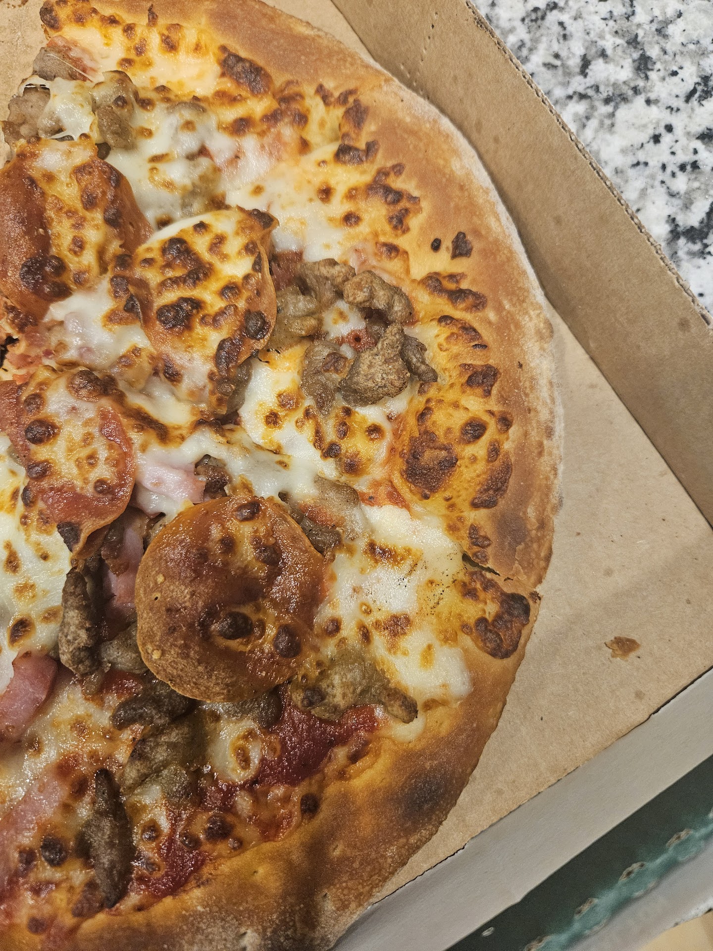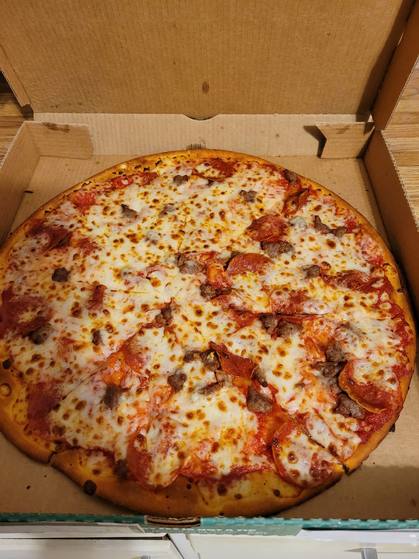 Read moreIt's been a long, long time since I've had a Papa John's pizza. We live at the lake and don't eat pizza often, but when we do it's usually not a chain. But today, it was icy and scary outside so the office decided to order from Papa John's. It blows my former SoCal mind that we were too afraid to go out and pick up lunch, but we can call a pizza place and they'll deliver! So anyway, we ordered the two for $20 combo and what a pleasant surprise! The crust was hand thrown, the cheese was plentiful, the sauce was just enough and not crazy saucy and fake tasting and the toppings were generous. We had ham and pineapple on one and sausage and pepperoni on the other. A+++ on both. The icing on the cake was Miss Crystal, the girl who brought us the pizza. She had a smile on her face, told us to be careful out there and left with a fat tip...All around, an excellent encounter with pizza and delivery driver. We will definitely...