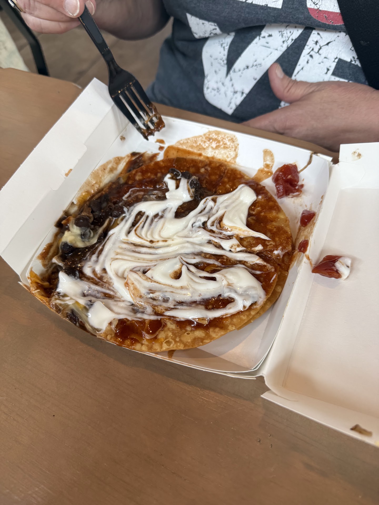 Read moreSo I decided to check out this new location today on my lunch. I figured cool a taco bell really close to work. Now I realize that they just opened up but at 11:15 am on a Wednesday you would assume there are more people to handle the inside counter and drive thru than one person. Well that would be a wrong assumption. One person was running both drive thru and inside counter. That didn't bother me as much as seeing a person on the line making food also on the phone. Granted she was wearing gloves but I don't expect the person making food also touching the phone then taking hand away from phone to use that hand to handle food. Who knows how many people sneezed and then touched that phone. No thank you I will take my business elsewhere. I will not step foot in that taco bell ever again. Not to mention that apparently the owner of this place and the manager condones unsanitary conditions of allowing staff to touch food with the same gloved hand that was just...