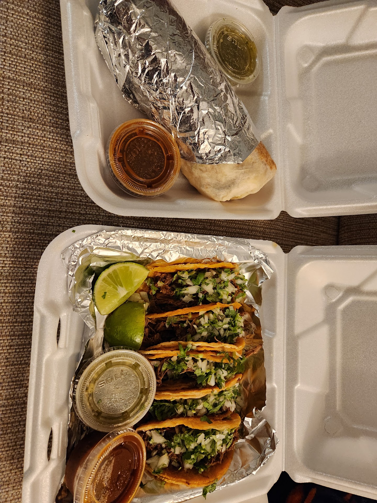 Totally legit street style tacos, decent prices, small, double tortillas are stuffed w/meat and topped w/lots of fresh onions and cilantro. We had a variety of tacos but in my opinion, the beef birria tacos were BOMB. I dipped my birria tacos in the green salsa and it was heavenly! Sadly, they were out of lengua/tongue, but I'll wait till next time. 😉