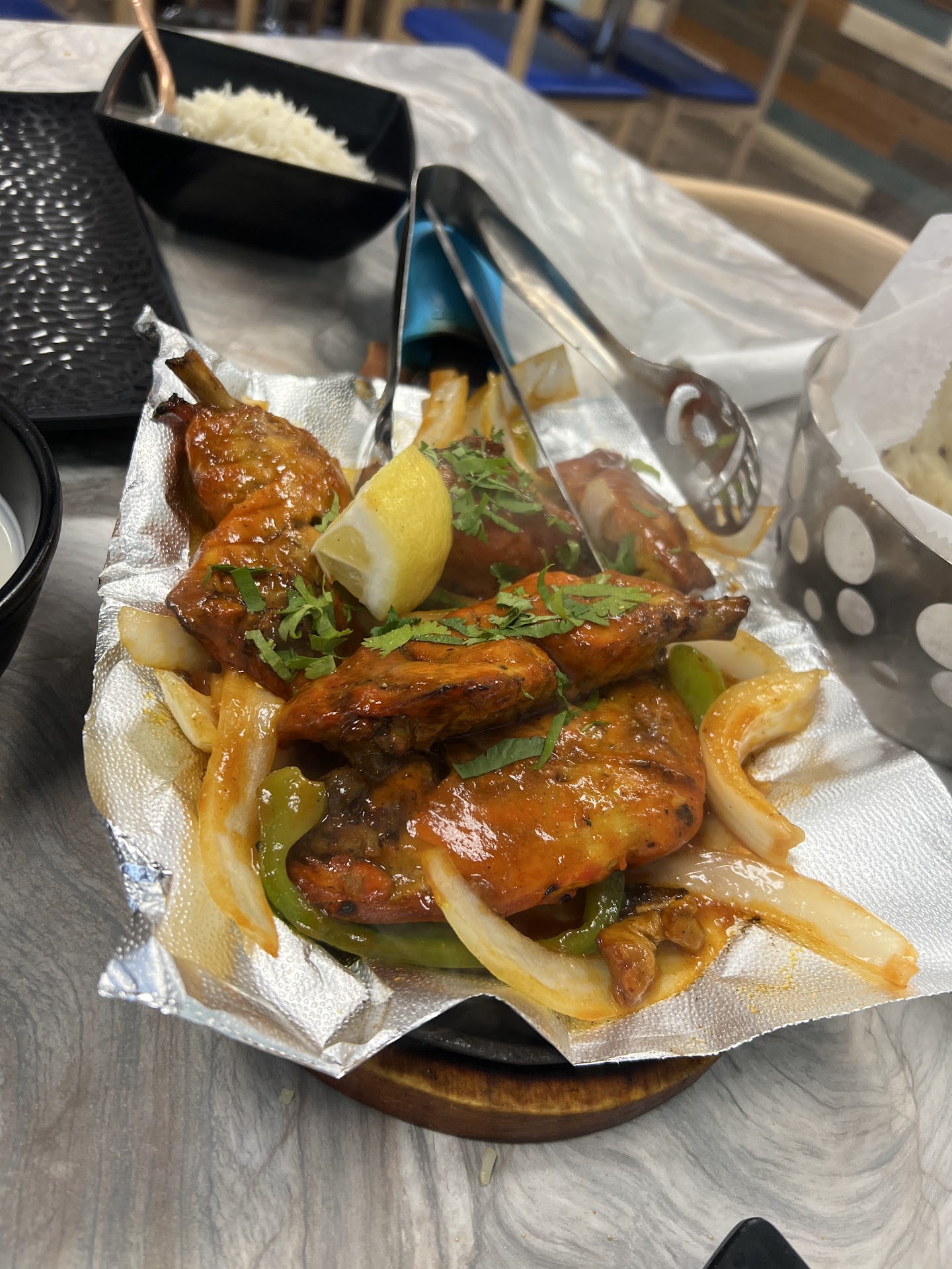Tandoori Chicken and Butter Chicken - GF and Daughter shared these, so very low heat. My daughter still prefers our neighborhood place but said this “worth making an excuse to come to Jefferson City for”