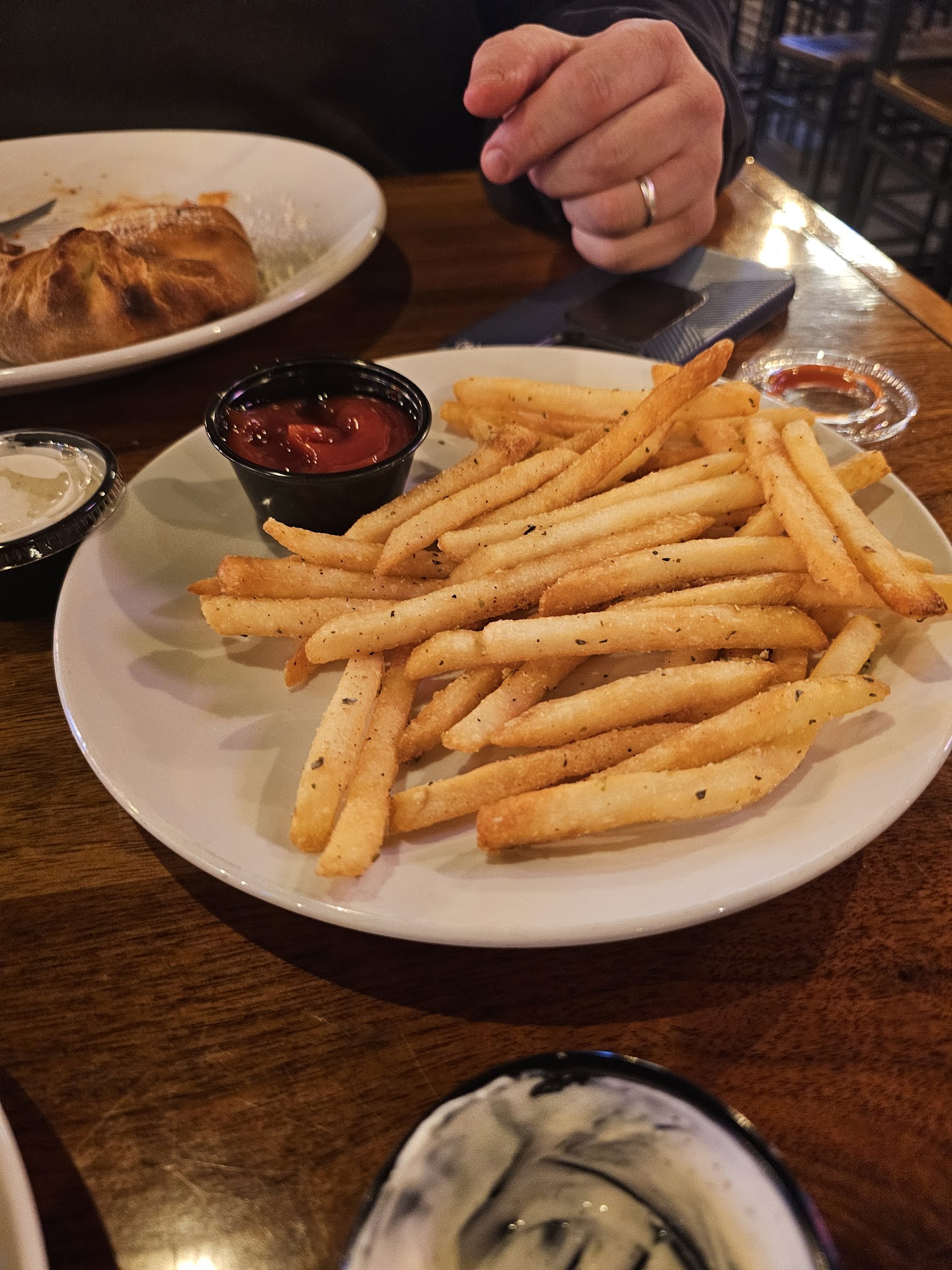 Revisited on 11/30/24 for round two, and oh boy, it was a letdown. The ravioli, which obviously wasn't homemade, had that distinct 'I've been chilling in Cisco's freezer' vibe. I opted for marinara over ranch, but guess what? The marinara was MIA. My husband embarked on a quest for a tiny cup, only to be assured it'd magically appear at our table. Fast forward to our last three ravioli, and the waitress drops the bombshell: 'Marinara? That's extra.' Huh? Last time, it was free and our server was a rockstar. But wait, there's more! Swapping chips for fries? You guessed it – extra. So, it seems condiments and fries are luxury items here. Got it, but consistency would be nice. The Calzone arrived minus dipping sauce because, of course, that's an up-charge too. Are they running a condiment black market? No welcome upon arrival, no farewell, despite a welcoming committee of 4 or 5 staff doing what appeared to be zilch. The owner managed a 'have a good night,' which was pleasant, I'll give him that. But $64 for this adventure? No condiments included? I'm out. After two visits, I'm voting with my wallet – $64 can buy a lot of...