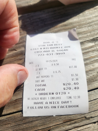 I’ve had my fair share of Italian beef around Chicago, and Bob'O's might just take the crown—especially on the Northwest Side. The beef was outstanding: tender, juicy, and packed with flavor. The portion was more than generous, and they didn’t skimp on the extras either. The sweet peppers were large, plentiful, and incredibly flavorful. The giardiniera had just the right kick and balanced the sandwich perfectly.