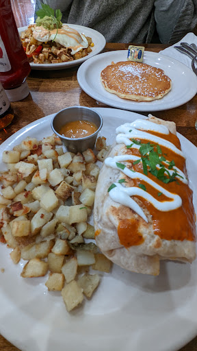 When it comes to breakfast potatoes, I am in the camp that eats them, yet, I do not enjoy them; the flavor is typically mundane. Such was not the case with Breakfast House. The side of potatoes that came with my dish was as savory as the main course. Their seasoning impressed me as it uplifted the taste of the potato. Not outshone, the burrito was first-class, with the Guajillo sauce adding an adequate amount of spice. My wife shared some of her hash, and that tasted great too! The pancake that came with it was airy and drenched with the in-house syrup led to a mouthwatering pancake. Both plates were straightforward as we knew what to expect but delivered high-quality flavor.