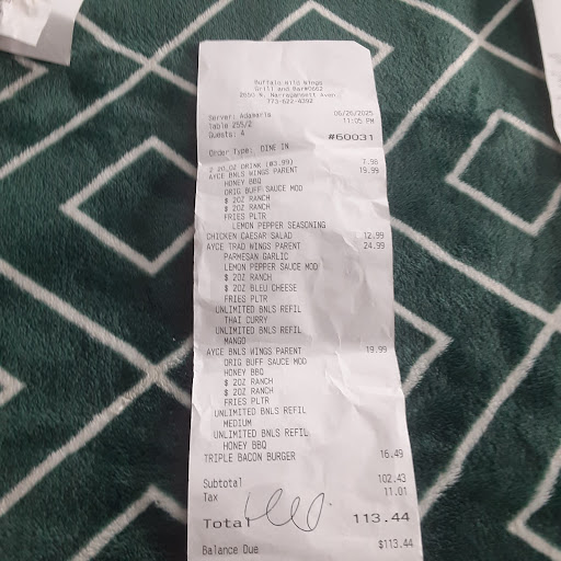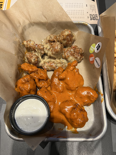 Read moreHorrible horrible horrible I spent $43.00 on a 20 peice wing half Buffalo & honey bbq also a large potatoe wedge add cheese $1.15 cent plus a small order of cauliflower $14.00 this not including tax so over $50.00 my food took 30 minutes after I was told it would take 20 minutes the cashier came off real sweet an nice rushy fast quick to take my order but by time she handed me my food she almost forgot something I requested which was sour cream. So she ran back to get me one an came back with the smallest sauce container of sour cream. Then got attitude when I asked for a second an said I have to charge you for what? It doesnât come with any sour cream. Then the manger came up with food apparently itâs busy at 10:00pm I asked the manager whatâs the difference from ranch an blue cheese he said look at them like why canât they write a B for blue cheese and R for ranch I had to touch the doors to enter restaurant last thing Iâm trying todo is open my togo order of food. I want Togo home and eat and enjoy my food. But now I regret even purchasing and spending my hard earn monies where clearly Iâm not welcome Manager grey head older man so I can get why he wasnât the nicest but my god bbw gotta do better like frfr tripping over a sour cream is wack to me. A really uncaused for manager went an got it for me but his demeanor rub me the wrong way.