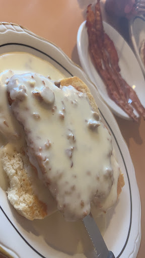 Food: the biscuits and gravy were decent but did taste a little watery for my liking. The country fried steak was good. Breading was consistent and flavorful. My girls got pancakes and waffles. They really enjoyed that. I also got a side of ham off the bone and it was a little salty. We did really enjoy the hot vanilla lattes. My husband got an order of pancakes, and he was disappointed in the texture and flavor of them. He said they tasted like plastic, almost as if they came prepackaged.