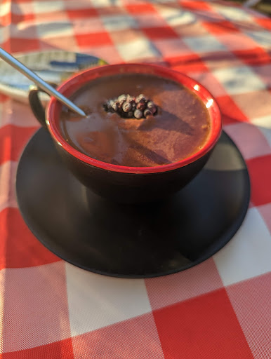 Eating here is an entire experience! First, they have the cutest tea sets and dishes along the wall that are for sale, and the interior is super cute and cozy. We had no clue what to order, so Caesar came and explained the variety of perogies to us, so we decided to start with those. We had the Ukrainian potato & cheese, mushroom & mozzarella, bacon potato & cheese, spinach & feta, and chocolate perogies. Caesar cooks the food right in front of you behind the café counter. Each crock of perogies is served with a thick slice of butter that's left to melt for a bit before enjoying. Every single one was absolutely delicious, but my favorite were definitely the mushroom & mozzarella, full of umami goodness with the perfect amount of cheese. I was hesitant regarding the chocolate ones (my daughter was the one who requested them), but I was pleasantly surprised. They are a little smaller than your average pierogi, and I'm not 100%, but I think the dough was a little thinner. The inside was decadent, and put me in mind of a chocolate truffle... soooo good! We also tried the French onion soup, which is made in house, to order. Caesar said the soup is made with a hint of white wine, and the flavor was phenomenal, with the perfect amount of melty cheese and crusty bread. My other daughter had a raspberry pastry that was also super tasty. We finished everything off with some sipping chocolates for each of us. I thought this was just hot chocolate, but I was wrong. I had the dark chocolate, and my daughter had the milk. It is much thicker than hot chocolate, like if you dip a spoon in, the spoon will come out coated. The purveyor said that if you were to refrigerate it, then it would become a mousse. It was the perfect end to a perfect meal.