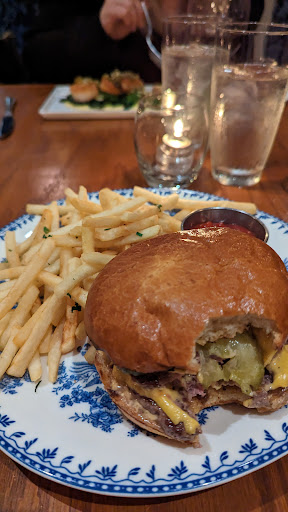 Read moreFood: This place has a burger that was consistently ranked in the top ten of the best burgers in Chicago, so I had to try it. It did not disappoint. One of the best burgers I've ever had, hands down. Juicy, cheesy, greasy, and filling, with sweet pickles. They had really nice fancier items as well, like pork dumplings and scallops which we also tried. The chef truly is creative with a lot of control and care over the menu items.