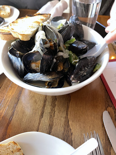 Our mussels then came and WOW, just WOW. Champagne and Brie broth on a huge order of mussels for a start was just amazing! We enjoyed every bite and dunked our bread into the broth until there was almost no more. The best! Our meals then started coming out, my wife's Sea Bass and my Chicken Roulade. Both amazing and so flavorful.