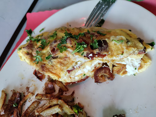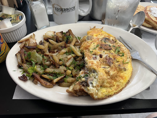 Today I tried a bacon date and goat cheese omelette which came with a side of pancakes and hash browns, all for $14. The Omelette was different, with a combination of savory, sweet, and creamy! I highly recommend the spice rub that is on the side, which is very tasty and not too spicy. It is definitely worth coming back here, just might have to wait or come at a later hour. Customer Parking is available alongside the restaurant and on street, but beware that the parking lot sign does not indicate that Edgebrook Coffee Shop customers are listed on there. I recommend the business to make parking recommendations to ease the burden on the customers, but I had no problem parking...