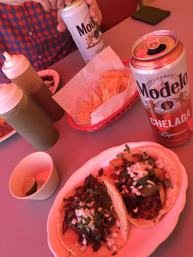 The weather was perfect for eating outside (2 tables inside, abt 4 tables outside) on the quaint, roofed, cafe-style patio. The food is made when ordered, cash only. I had perfect tacos de chorizo, not too greasy, w cilantro & onion on perfect corn tortillas. My friend had a Super Burrito Suizo. Wow, it was HUGE! He felt it was too good to add the great homemade Rojo y Verde sauces. I had part of that as well. Everything in/on the burrito tasted excellent- the perfectly grilled Carne asada, crema, guacamole,etc. At a time when "fusion" restaurants are too many, El Potosi was a pleasure to find n eat at. I think it was the owner who cooked/served. She's very sweet. We'll go back. Street parking is...