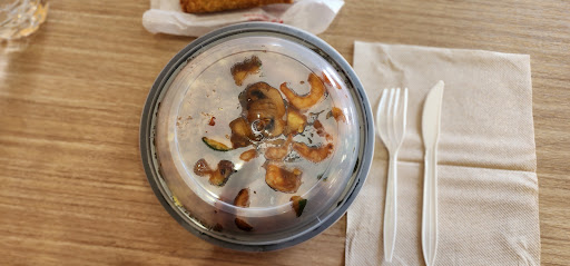 We both agreed the egg rolls were the worst either of us had had in our lives. Nothing but hunks of cabbage is a soggy thick wrapping. We both thought of Totino's egg rolls, which are disgusting. Perhaps a sliver of carrot here and there. Half the size of what you would expect. The people behind the counter were trying to be helpful. The last thing we said is that if we were starving, we wouldn't go back. Overpriced, overcooked, not the correct ingredients for the dishes (likely cost related) and a poor value for the money. We left spending almost $20, then both got bad headaches within an hour, so the food ha to have MSG in it as well. WE seriously question the other reviews. The plastic utensils are included so you can see how small the dishes were. The main dish sat on a big...