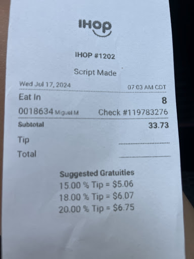 Read moreMy dad was a short order guy. Fried or scrambled eggs. Sausage links. Bacon. What I remember most were his flapjacks. Whipped up from scratch. Buttermilk pancakes. Maple syrup. Made them Sunday mornings. Light and fluffy. Cooked just enough to have a slightly crisp edge. Those little bubbles all around. We'd have a cup of Joe to start. Now IHop is my pancake place. When I come here I think of those Sunday mornings. I get a kick out of this place. Tall pitched gabled blue roof. The kind of roof little kids draw. On a small house. Long & narrow. Yet homey. Furnishings typical I-Hop. Usually clean tables & booths. Yes some booths in need of upholstery repair. Two or four seat. Some aisle chairs. Nothing sleek trendy or chic. Comfy and cozy. Lots of light streams in the windows. Come as you are kinda place. Affordable. Not far away. Lincoln and Whipple with a decent sized lot. Easy to find. Well lit at night.Handicapped accessible parking. Usually not too busy. That pitcher of hot coffee comes in handy when you're having one of those days. Usually friendly staff. Service varies. Everyone can have an off day. No one bothers you here. So I can have a meal in relative peace. I come for the breakfasts, more like brunch. And that's the great thing about this place. Decent portions Breakfast any time. Maybe a combo plate. Scrambled eggs. Sausage. Bacon. Hash browns. Short stack of buttermilk pancakes. That ball of cold butter you had to cut carefully without tearing a hole in the top pancake. Sure there is so much more on the menu. Seasonal specials. Burgers. No its not perfect. But it's the pancakes that bring me here. Bacon. With a hot cup of Joe. Same as it ever was... Same as...