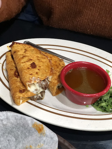 Like many others said, food portions are small depends what you get. I got the chicken and it has quite a bit, but the side of rice and beans not as much. My husband got a big birria plate and the bowl was a regular size bowl with more consomé than meat. The server removed the plates and you can see it was more than 1/2 of just caldo.