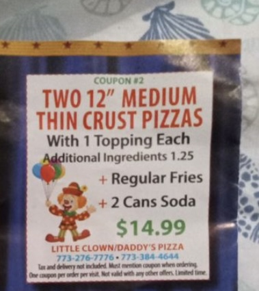 Read moreIâve been ordering from clown pizza for years. Always had great service and the pizza is great. Unfortunately seems that the owner has grown spoiled by his success and has lost my business for ever. Seems he has hired what I believe is his daughter or family to take orders. On several occasions Iâve asked her to round up or add tips to my card for the driver as I hardly Carry cash. Her response was â what do you mean round up?â After trying to explain it to her I finally gave up and chalked it up to our wonderful education system and family values or lack of. Secondly, online they have specials which is great but I contacted them again and asked to speak to the owner to simply inform him that his website stated he has a medium pizza which is 12â for $12.99 and he proceeded to tell me that is a small pizza. I told him no problem just wanted to let you know itâs wrong on your website. His response was âthen order it next time online, byâ really? So disappointed because I really enjoyed ordering from them. Hope he doesnât treat anyone else that way or I see closed doors soon. Maybe he doesnât even...