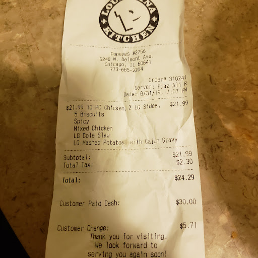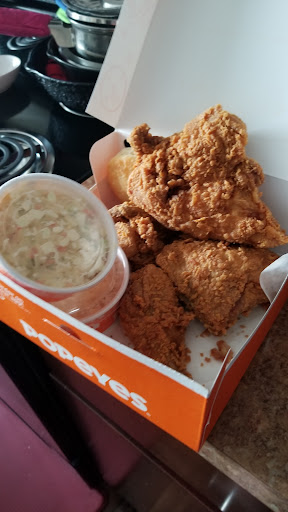 Read moreUnfortunately after placing my order through the drive-thru I was told to park and wait for my order it was being made fresh. When the girl brought me my food I asked her is all my food in there? She said oh yeah. When I got home my chicken wasn't there! Everyone else's order was there along with mashed potatoes and coleslaw and biscuits. So I called the manager he said come tomorrow you get free chicken. It wouldn't be free cuz I had already spent $30! So nothing would be for free cuz I've already paid for it. I told him I'm coming in right now. When I got there he apologized. I asked him could you please give me an order of mashed potatoes with gravy on the house since by the time I get back to my house it will be cold? He said yes and gave me a large mashed potatoes with gravy and an extra six buns. That was a nice gesture but I wish I didn't have to go back for my chicken. I will still go back to that Popeye's Chicken but I will check the bag...