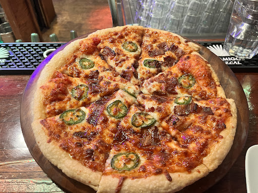 We moseyed down to this place because it’s close to home and we really really want something to thrive in this spot. We NEED a neighborhood tavern to walk to watch games. They have lots of tvs and they had the Cubs game on. We met Agnes the owner and she was lovely. The menu is small but there is something for everyone. We ordered buffalo wings and a bacon jalapeño honey pizza. Honestly the wings were really good but the pizza was amazing. Agnes explained to us that everything is made in house. Even the pizza dough. Alex the bartender made me an amazing craft cocktail called The Traveler. It was delicious! The esthetics were a little confusing. The interior is exposed brick and wood beams and reminds me of an old castle. There are tables and banquets around the perimeters of the space. There are no tables in the center of the room that makes it look like a huge dance floor leaving the space feeling cold and barren. The atmosphere is a work in progress and we were told that they are still working on it. The food and service were top notch and I can’t wait to go back to try some other menu items. This place has incredible potential to become the neighborhood tavern that is greatly needed in our area! Kudos to Agnes and her vision of becoming just that kind of place!