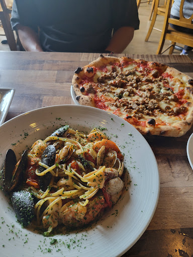 Read moreHighly overrated and only go for the pizza if living in the area. It is NOT an Italian trattoria. No self respecting nonna would serve tasteless, bland pollo con funghi swimming in a runny, oily cream sauce. The funghi ravioli were not any better also in a cream sauce with some of the mushroom filling gone from the pasta pocket. The lasagna is nothing to rave about. The calamari is good but the fried zucchini blossoms are downright awful, a soggy, greasy mess probably frozen and deep fried. As for desserts, the filling in the cannoli is dense and the shell is hard as a rock (probably frozen). Shame on Check Please for showcasing this below average restaurant. Service was pleasant but the ambiance is that of a sports bar with TV screens everywhere and certainly not an Italian trattoria. No...