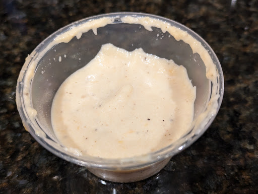 Their habanero salsa is white. It looks vaguely like a sauce for fish tacos. I thought it was added to our order by accident.
