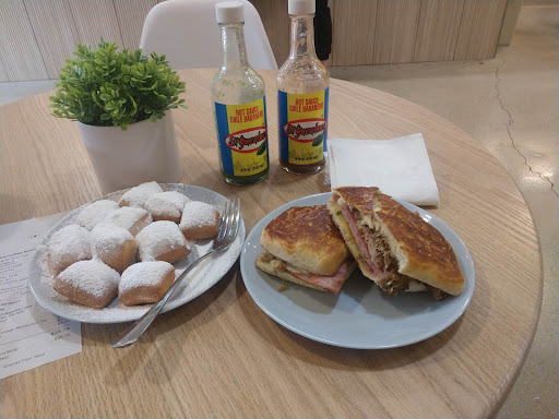 Well this is the first time coming here and this is recommended at my neighbor who works here as one of the line Chefs. Anyways this is a local modern cafe in Hermosa community were I live and had made this a bucket list to try their Cuban sandwiches and their coconut lavender latte. I also saw they had Beignets which I ordered as a dessert since this ended up being a brunch. Anyways the coffee was delicious. It was supposedly strong in caffeine but I didn't feel it. I had stopped drinking fancy coffee for some time since my diet and was cutting back on certain foods and beverages. The coffee was fresher and better than something like Starbucks. I hate to use this as a comparison when Starbucks was a new trend in coffee back in the 90s but it's not a big chain either which makes it tasteful in regards to local roasting. The staff member Pierre gave me a demonstration and tour in their room where they locally roast their proprietary coffee. as for their Cuban sandwiches it was delicious. The way they toasted the bread was just the right texture, crispy, with the pork they cook which was not dry. They ask the customer if they want hot sauce and I do recommend using the 2 hot sauces they bring out. The green one is spicy while the red one is milder which is what I like more. The Beignets were good but not a "wow" great. They made them smaller but compared to Cafe Du Monde that I had in both New Orleans and the package to make it was a little heavier in texture, taste and somewhat dry compared to Cafe DU Monde beignets. All in all I had a good and educational dining experience eating there for brunch. Also have a happy hello to my neighbor working that day and shared my feedback or experience. 4 out of 5 stars because of the expectations on a Beignets. Will come back for the avocado toast and a...