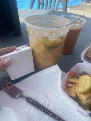 picked up take out for being poolside all the tables and chairs were pushed aside like there’s nowhere to sit and eat added utensils to the online order because I have nothing with me nothing was included, not even a napkin