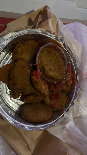 I ordered fried zucchini and asked if ranch came with it. To which the girl taking my order asked another girl working if it came with ranch and she said “no marinara.” So I asked if I could substitute ranch for the marinara. They were firmly said “no substitutions on sauce.” So I ordered ranch and asked for no marinara sauce at all. Because the person who ordered it has a sensitivity to tomato sauce. The appetizer was opened to find these workers had smashed the largest zucchini into the lid of the marinara sauce and it splattered all over half the order. I also ordered a 16” half veggie, half garlic, pineapple, and jalepeño. I’m a garlic lover. And it was so heavily applied it overpowered every other flavors of the pizza. No napkins, no utensils, or red pepper and parm cheese were included (which I did go back for hoping it would help tone down the garlic). It didn’t do much good and honestly the overkill of garlic ruined a whole half of the pizza.