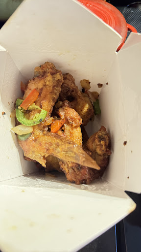 Chicken wings, were absolutely delicious, seasoned to perfection just the right amount of spice and crispy.