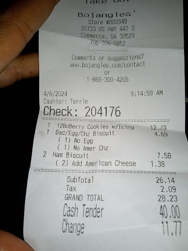 My husband went to Bojangles after a late work night to get food for us and kids. It was horrible.
