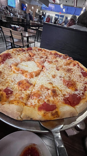 Now the pizza had no sauce in places so the cheese blows up then dries out... wow! Huge 3 inch crust on one side. Pizza not cut all the way through. Very little toppings for the $25 charge. This isn't New York Style pizza it's garbage for the money. No flavor and just all around horrible!!