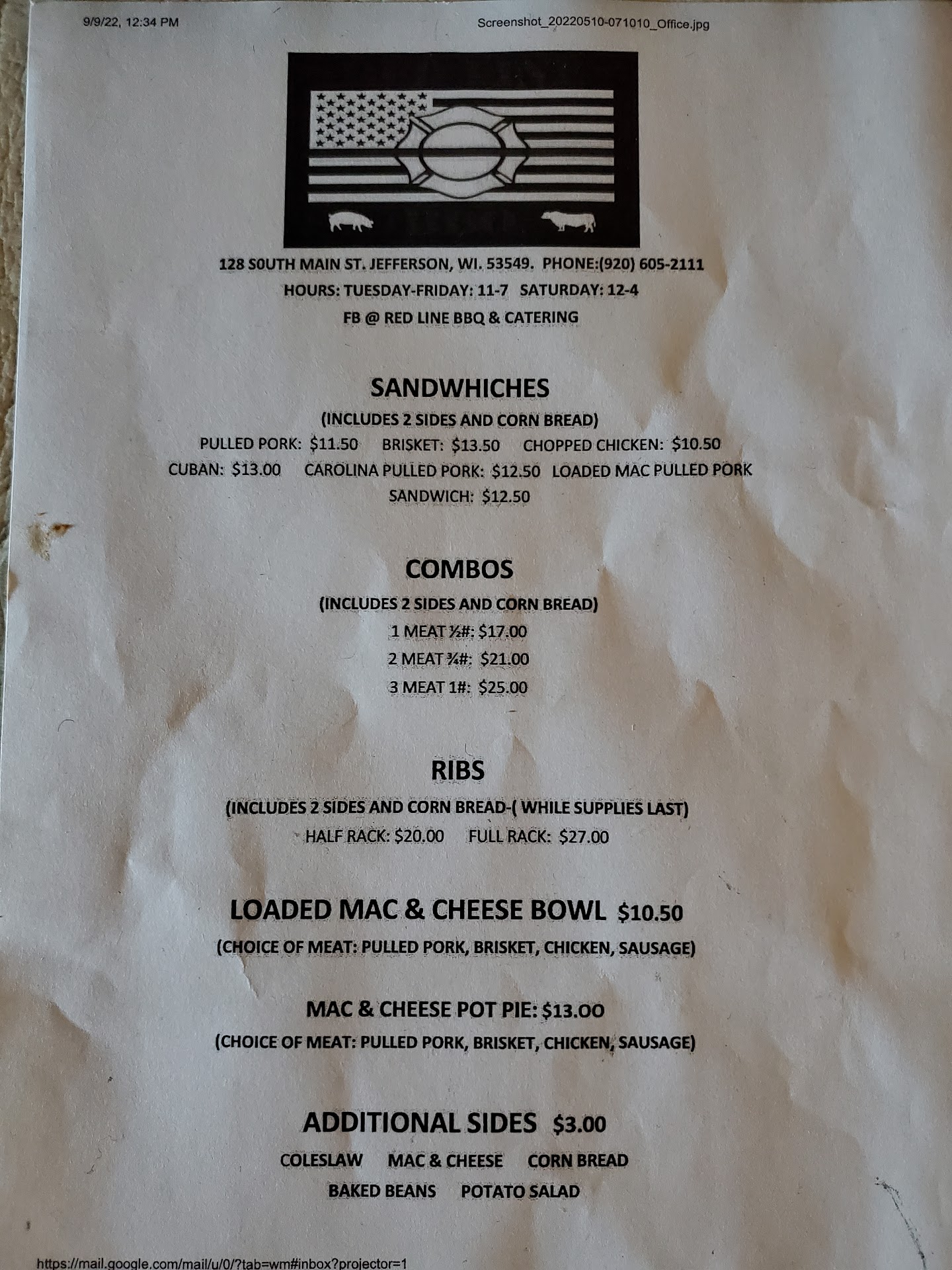 Read moreMyself and the company I work for are hosting an RV show here in Jefferson and needed a last minute lunch spot to feed our employees. I called Red Line BBQ around 11:20am and hesitantly asked if they might be able to feed 15-20 people by lunch time. I walked out with roughly 20lbs of food before noon! I'm currently sitting around a table full of people and hearing "This mac and cheese is f** amazing!" and "Wow, this is seriously good brisket!" Not only did they provide excellent service in a very small window of time, they provided us with the best lunch we've had all weekend! I...