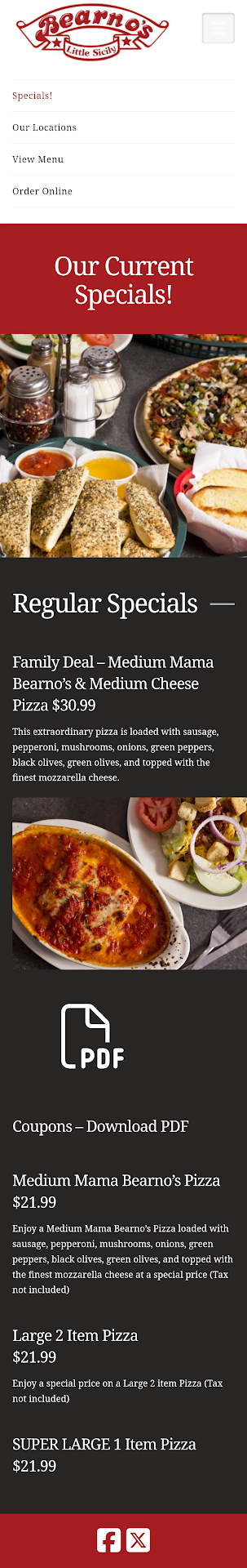Read moreAfter being sat, my wife and I waited patiently and thirsty for what seemed to be at least 15mins. At that point my wife stopped a guy who had walked by several times and even smiled at us. She asked if he could let our sever know we were here. He looked down and said that's me. Ok, whatever not the end of the world. He got our food and drink orders at that time. Our stuffed mushrooms came out way under cooked. It was like someone threw barely melt cheese on them. We sent them back. The pizza came out and it was good to be honest. What wasn't good is that our server didn't speak to us after taking our order. We had to send the mushrooms back with another server. Our server never asked how things were, never offered us refills, and didn't give us extra napkins though we had a 1yr old with us. I really like Bearnos, but I will not be back to this location again. This was our 2nd gar experience at this location. The manager never checked on us either after we sent back...