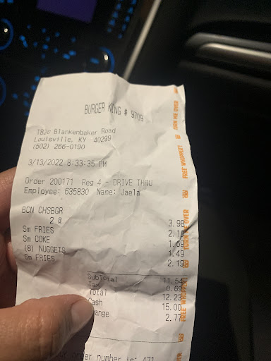 If I could give zero stars, I would. I ordered and paid through the app, then went through the drive-thru at the Burger King on 1820 Blankenbaker Parkway in Louisville. Inside, there were three employees—all on their phones and completely ignoring customers.