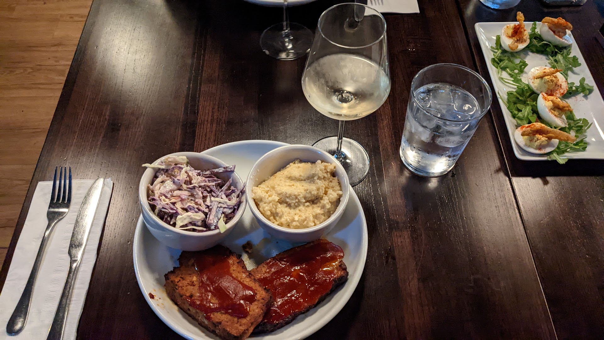 Overall, main dishes seemed to be met with approval. Lots of folks got one of the two types of burgers on the menu; the Cask burger with pimento cheese was especially well-received. I also heard good things about the meatloaf sandwich. One person did complain that their greens were too salty, but as a Californian I have to wonder if she's just not accustomed to how veggies are cooked in the south, lol.