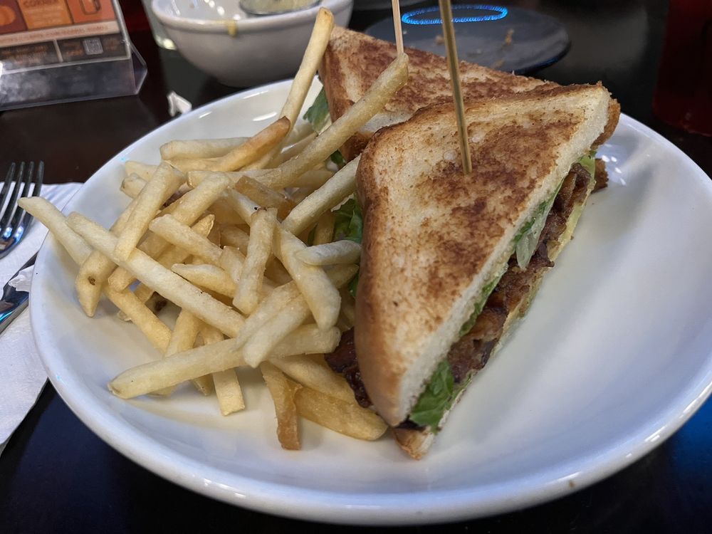 I enjoyed my entrƩe. I've had a fried green tomato BLT before and this one compared favorably; there was plenty of nicely cooked bacon, and the toasted bread was especially good. The tomato itself was a bit lack-luster in that, like the pickles, the breading needed a little bit more kick/seasoning and the tomato was a little tough and hard instead of crispy. But overall I'd give the sandwich a 4/5. The fries resemble McDonald's fries but are less greasy and salty. I liked them.